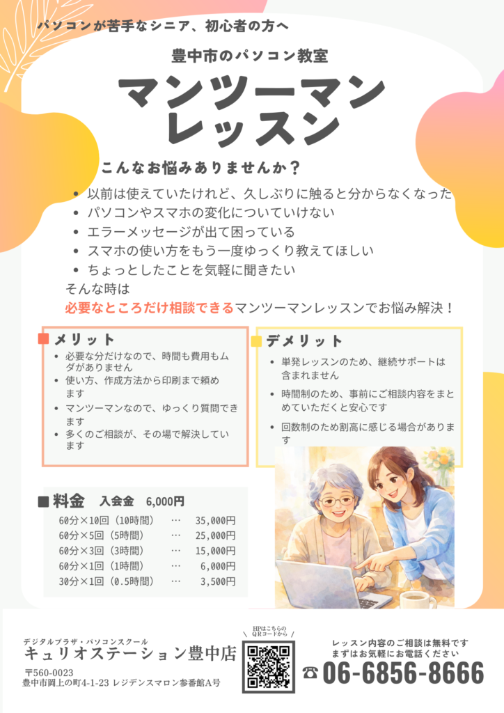 豊中市のパソコン教室|マンツーマンレッスンで困りごとを解決